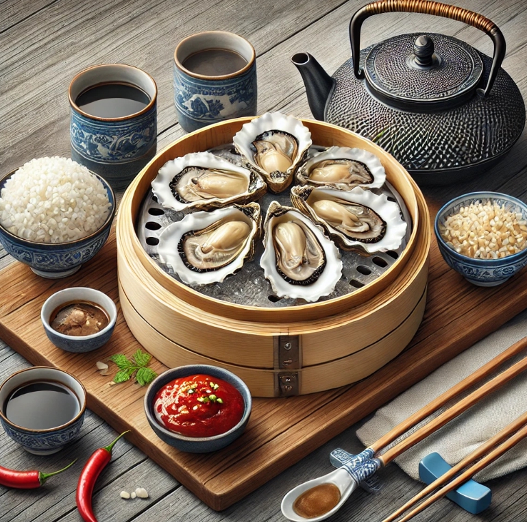 | 굴찜 | 김이 오른 찜기에서 익힌 부드러운 굴 | 찜기에서 익힌 뒤 레몬즙이나 간장 소스를 곁들여 보세요. |